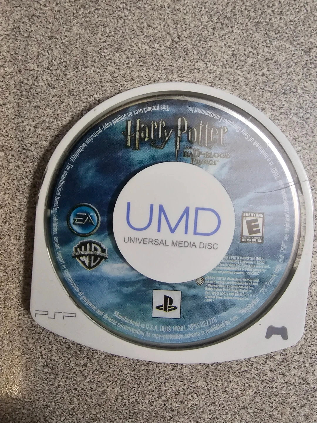 This is the Harry Potter and the Half-Blood Prince UMD for PSP. Developed by EA and published by Warner Bros. Entertainment. It's rated E for Everyone by ESRB.