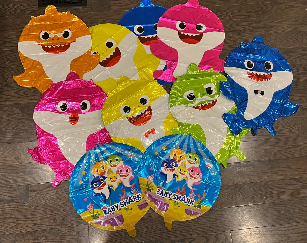 Baby shark birthday decorations with beautiful vivid colors. The colorful balloons can be filled with air, helium or water.