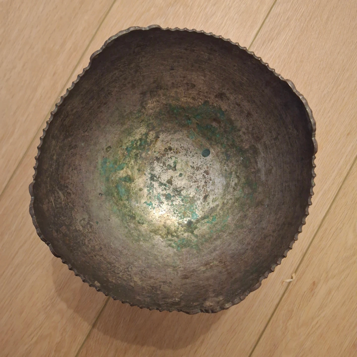Selling a vintage silver plated bowl. It has some tarnish and rusty wear, giving it a unique, antique look. Perfect as a decorative piece!