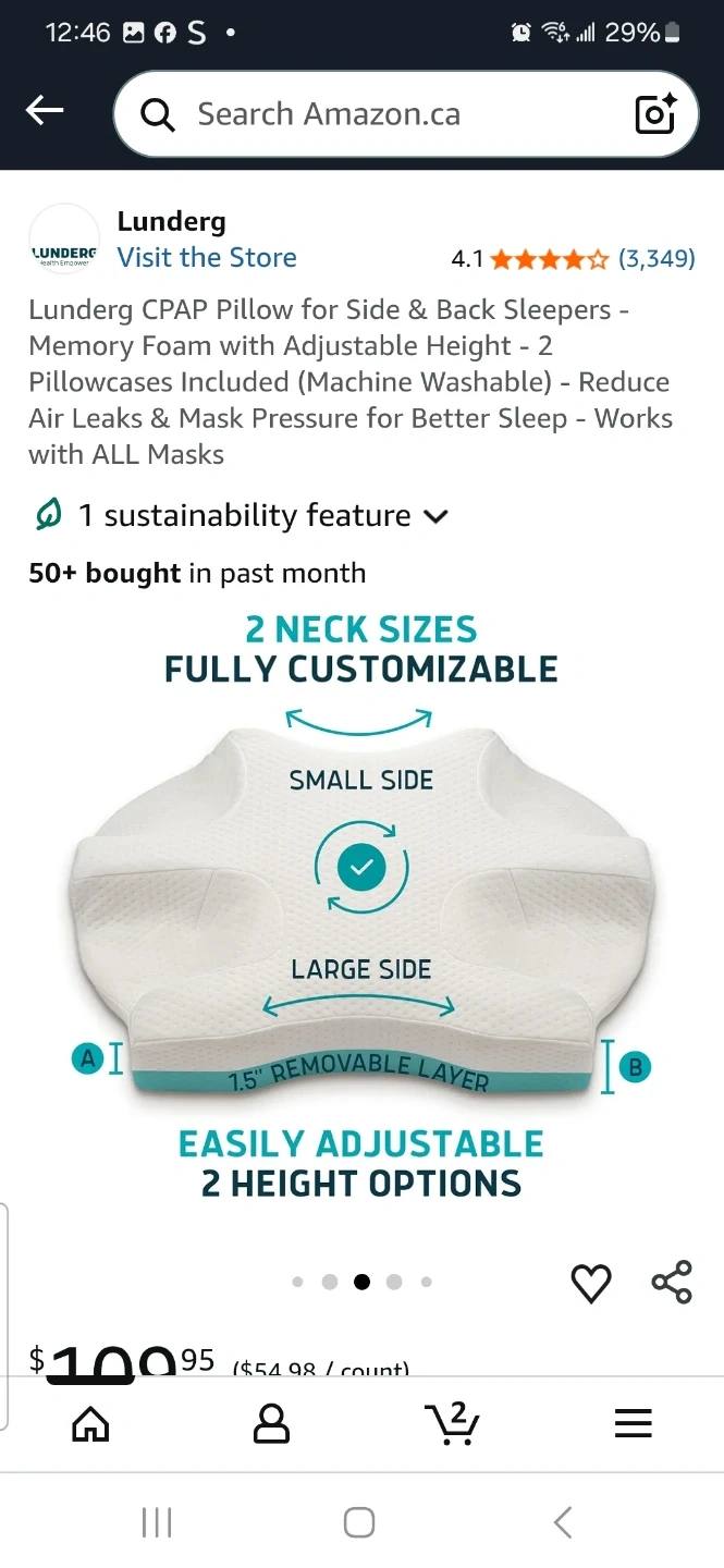 This Lunderg CPAP pillow is made from memory foam and offers adjustable height. It includes 2 pillowcases that are machine washable. It's designed to reduce air leaks and mask pressure for better sleep and works with all CPAP masks.