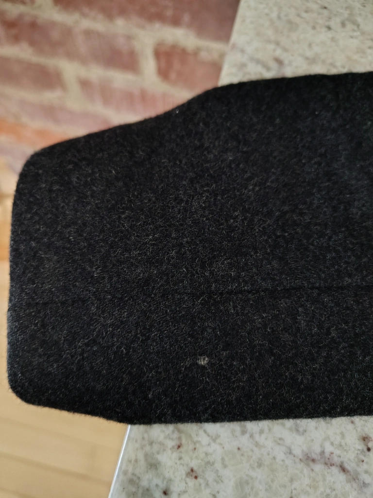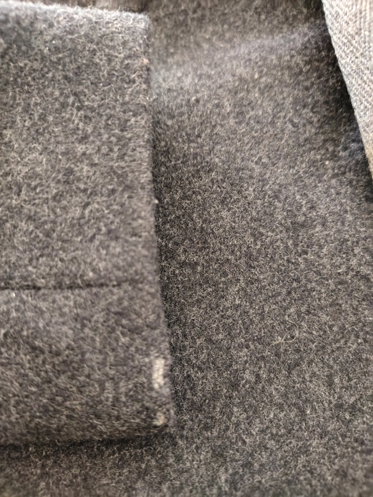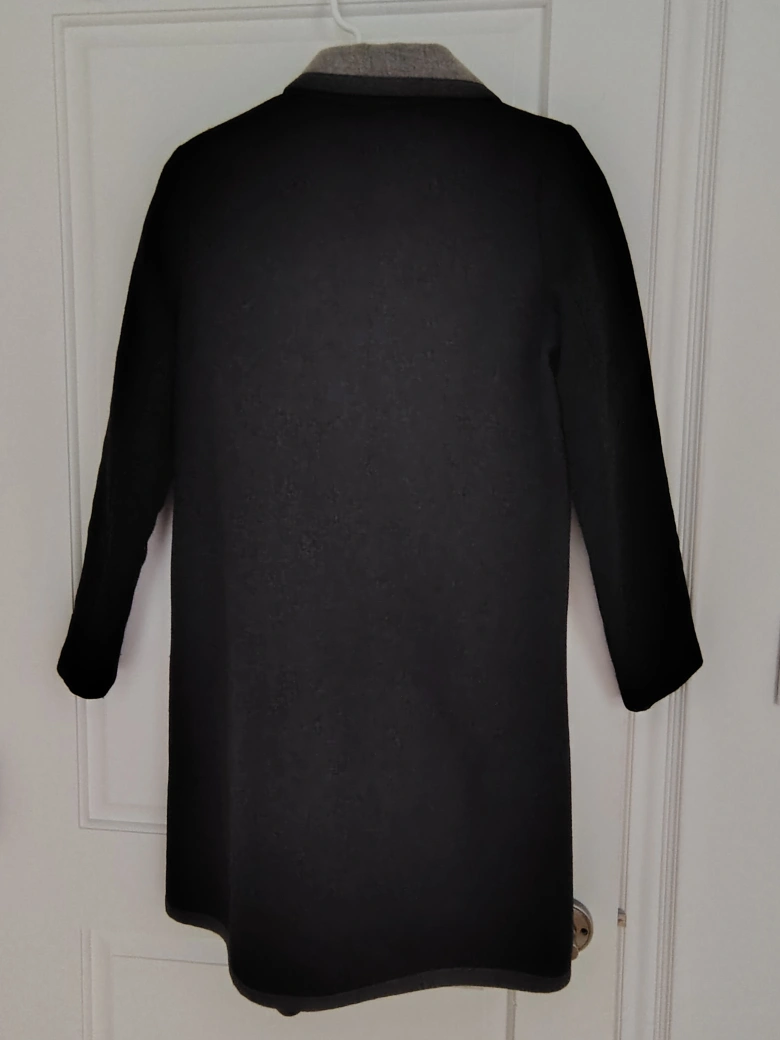 Lightweight yet cozy, this coat is perfect for fall or spring. It zips up on the right-hand side and has a flattering, slightly generous fit. There’s some light wear as shown in the photos, but still in lovely condition.