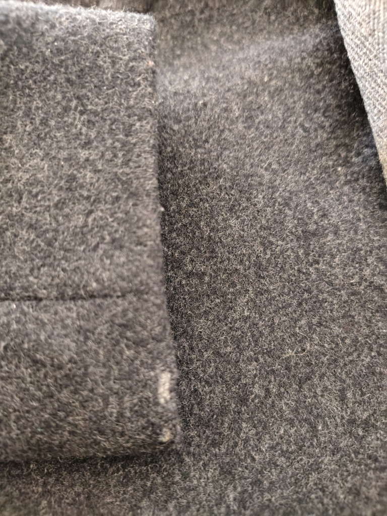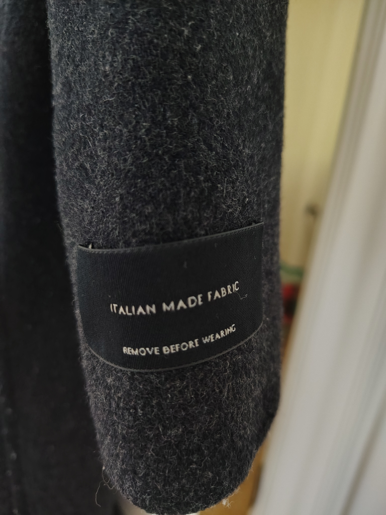 Lightweight yet cozy, this coat is perfect for fall or spring. It zips up on the right-hand side and has a flattering, slightly generous fit. There’s some light wear as shown in the photos, but still in lovely condition.
