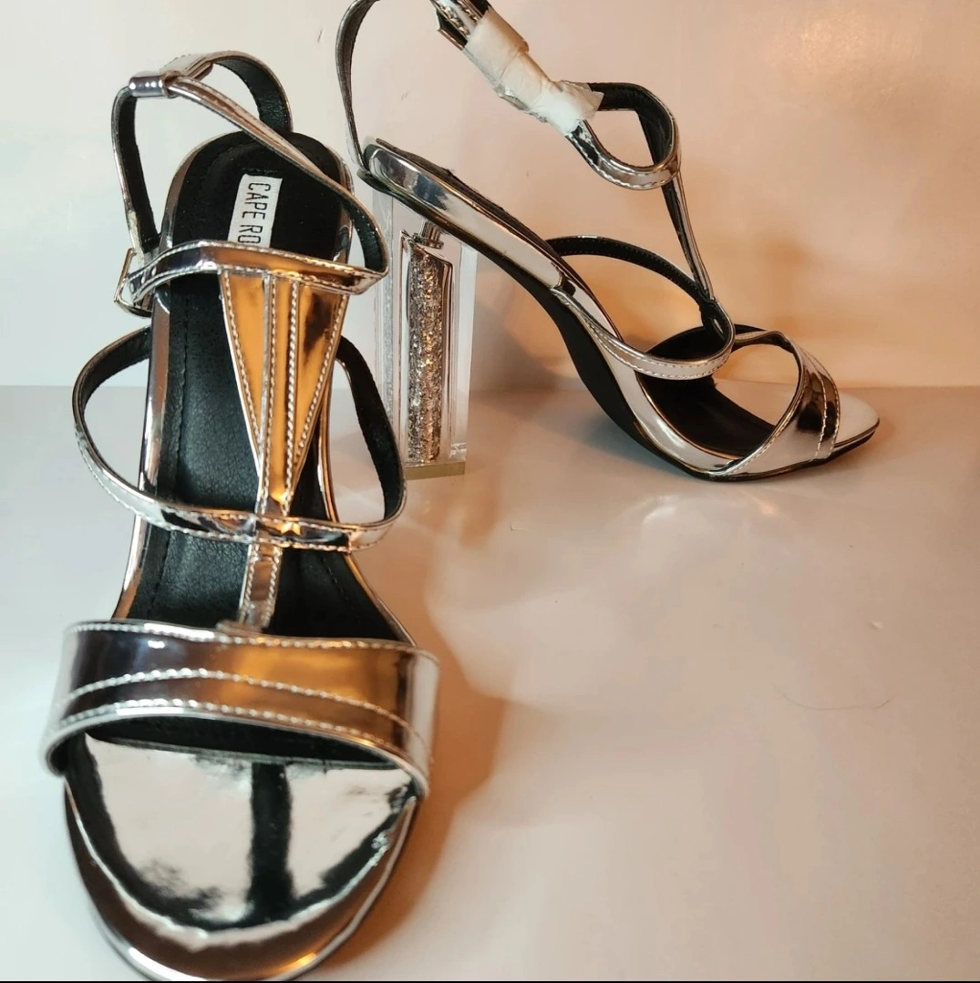SEXY SILVER GLITTER LUCITE STRAPPY HEELS WOMEN'S 9