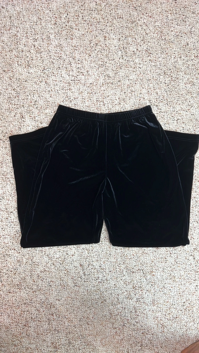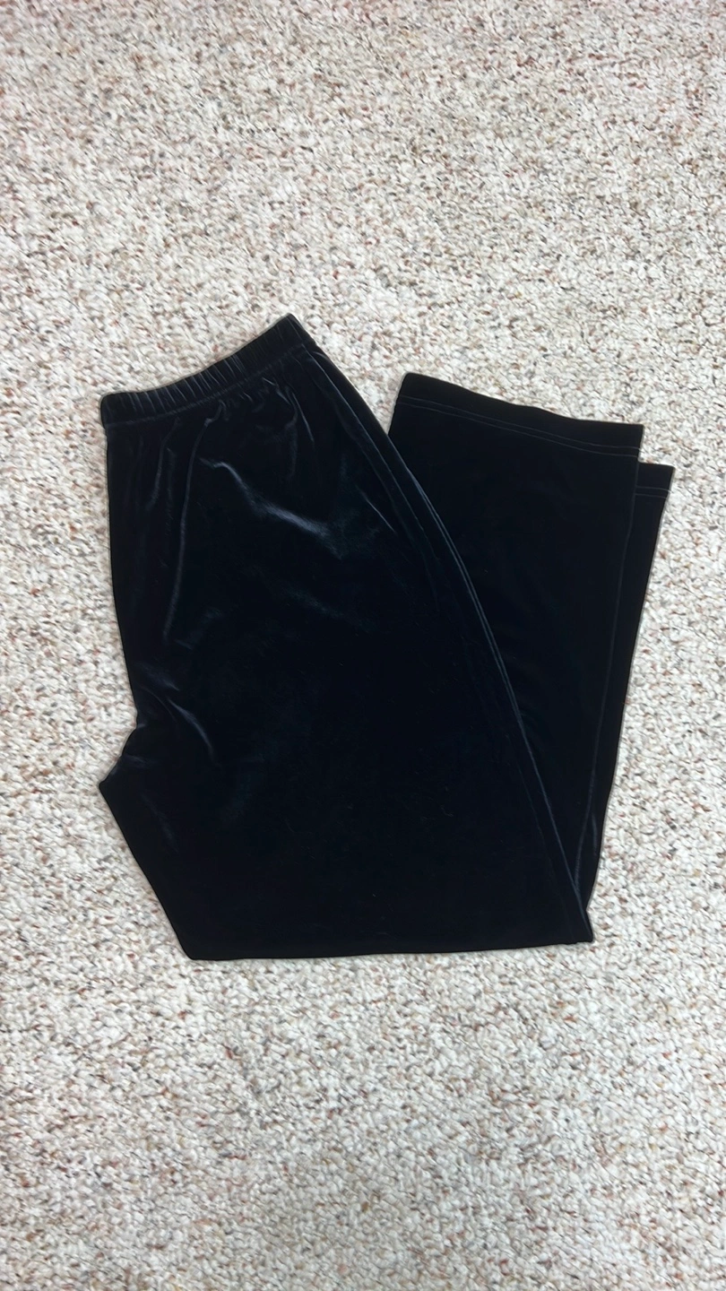 Black velvet pants. Elastic waistband. Cropped length. Soft material. Comfortable. Inseam 28”, lengths 39”. Size medium petite