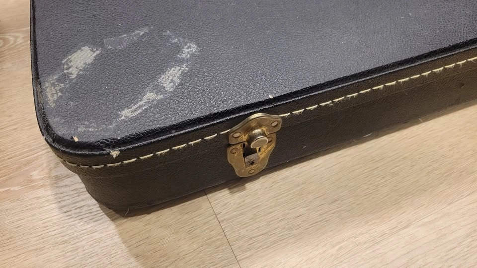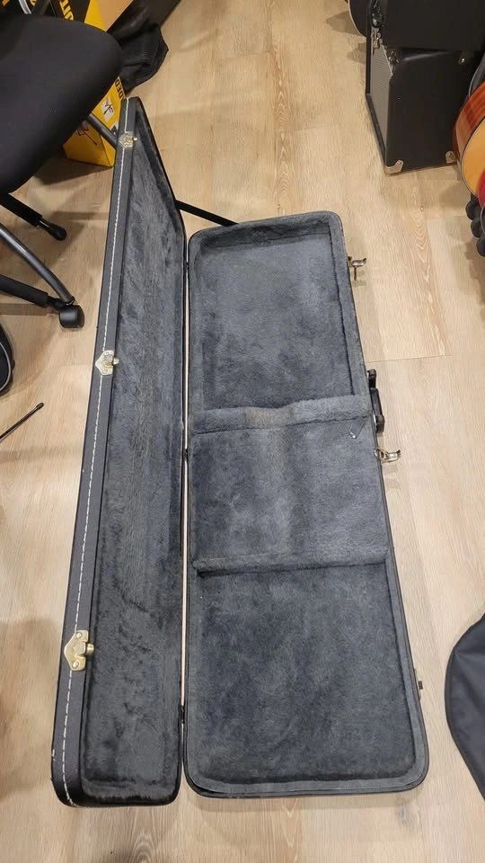 This case was made in Canada and will fit most bass guitars. It sells for $139 new. One latch is missing.