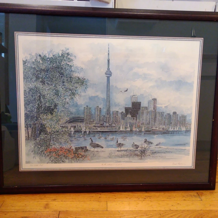 "On the waterfront Toronto " watercolor print by Gerard Paraghamiam 31" X 38". professionally framed. pre owned but in good condition