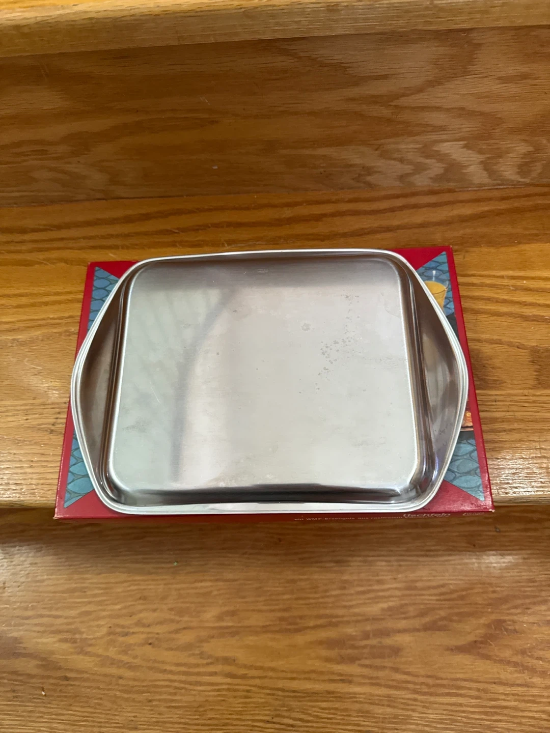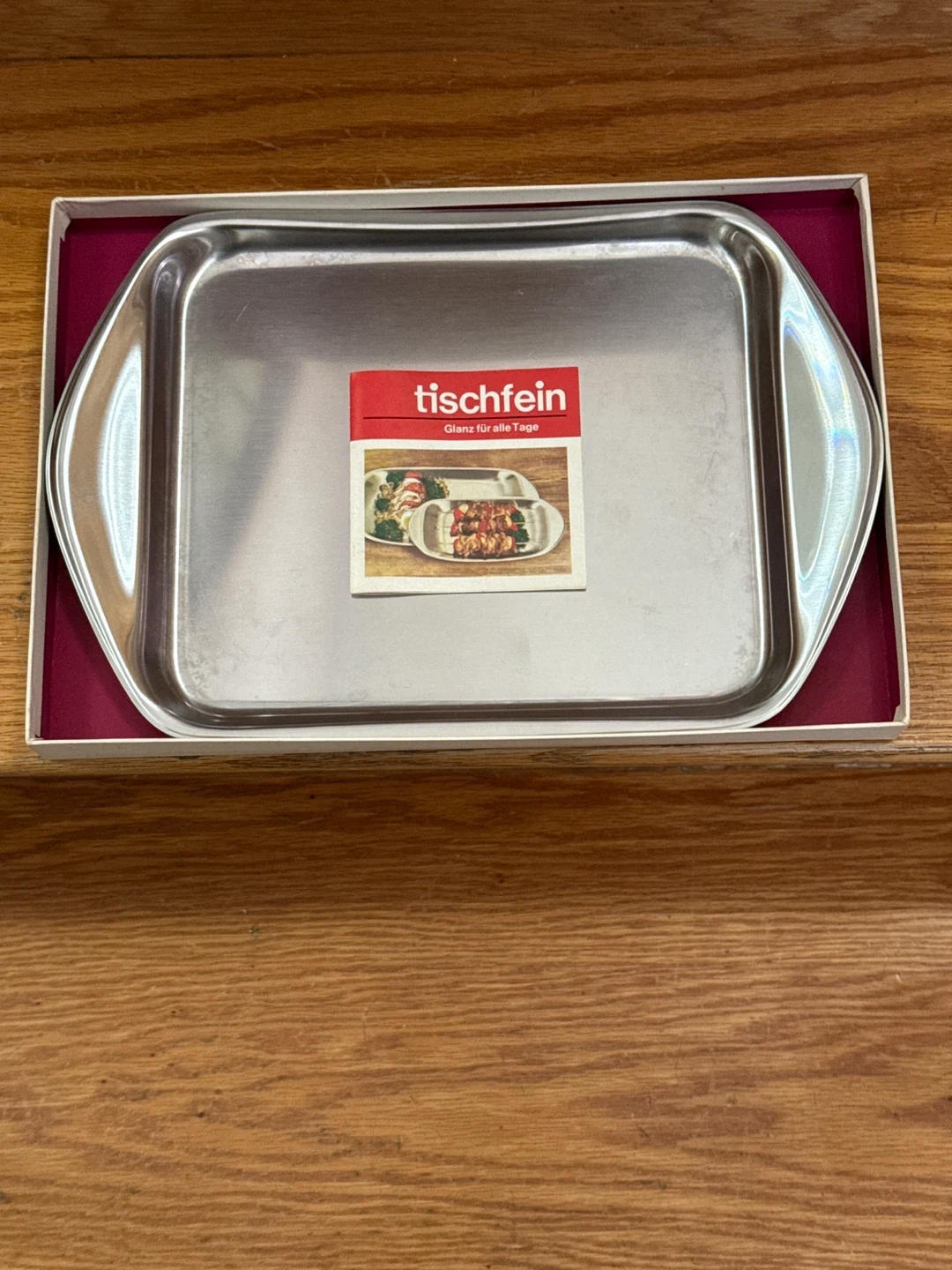 This is a gorgeous 18/8 stainless steel serving tray from Tischfein. It's perfect for serving appetizers or desserts. The tray is durable and easy to clean. A lovely addition to your tableware.
