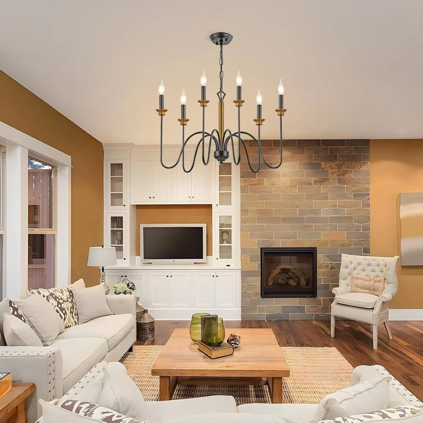 Black and Gold 6-Light Chandelier