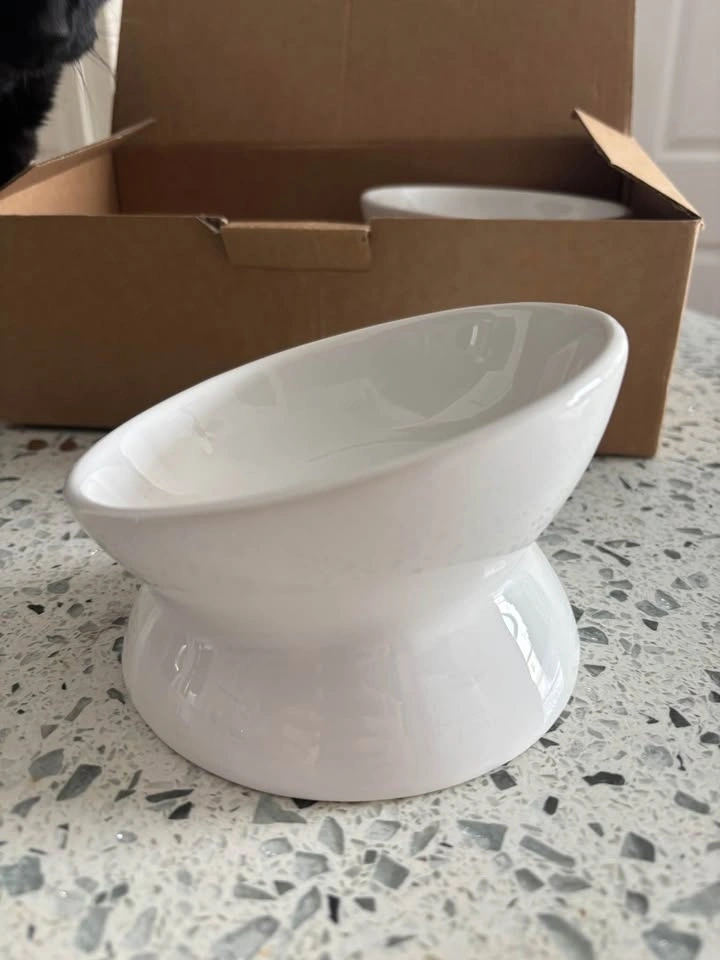 New brand 2 Elevated Cat / Dog bowls. Raised Food Bowls for Indoor Pets. Ceramic Whisker Friendly Anti Vomit Pet Feeding Station. Dishwasher safe, microwave safe. White, 2 Pack SET, 5 oz capacity.