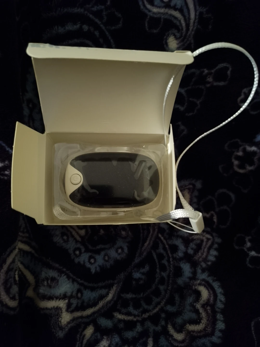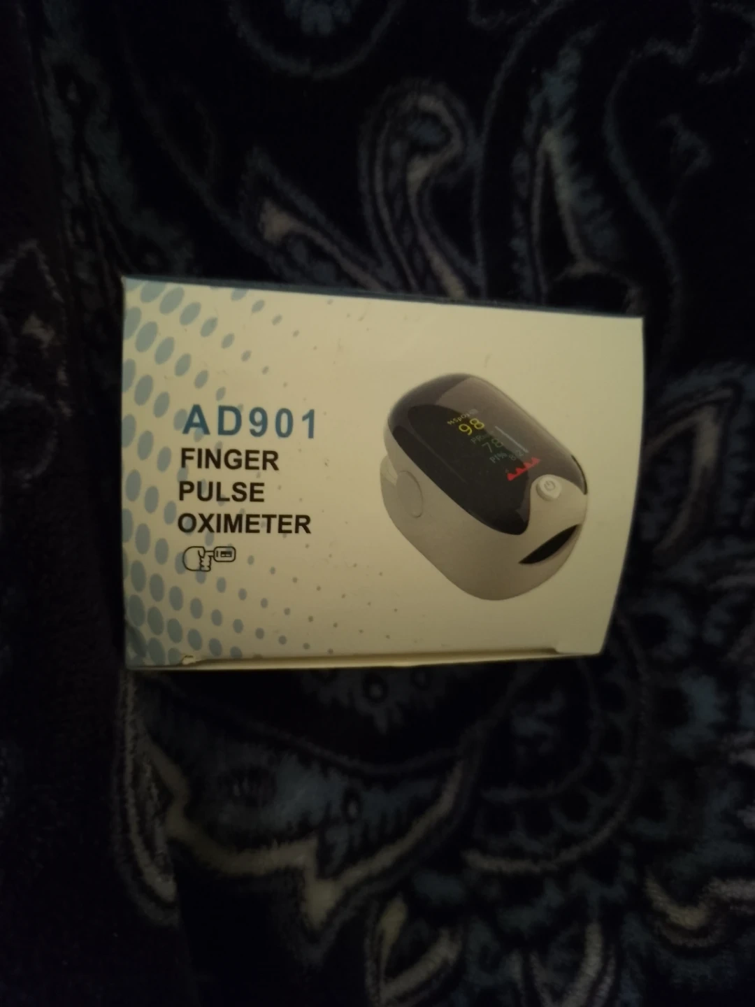 This is an AD901 finger pulse oximeter. It's designed for home use. Includes a lanyard for easy carrying.