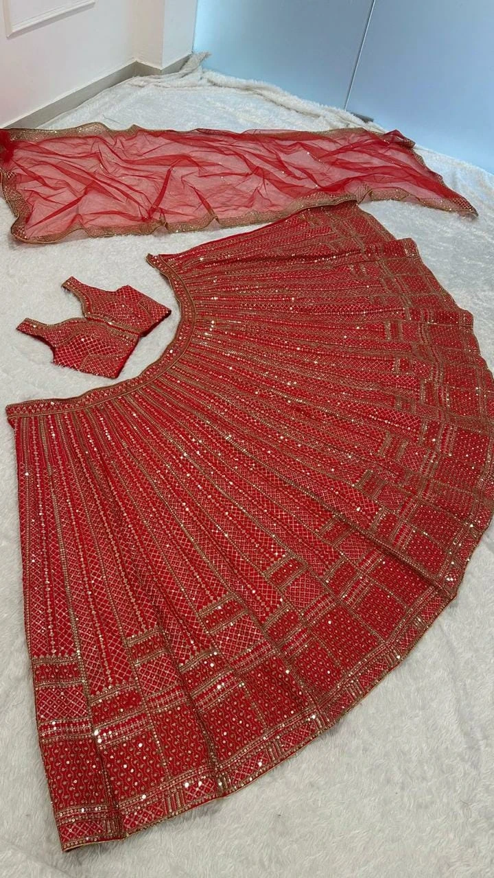 Red Embellished Lehenga with Blouse and Dupatta🏆