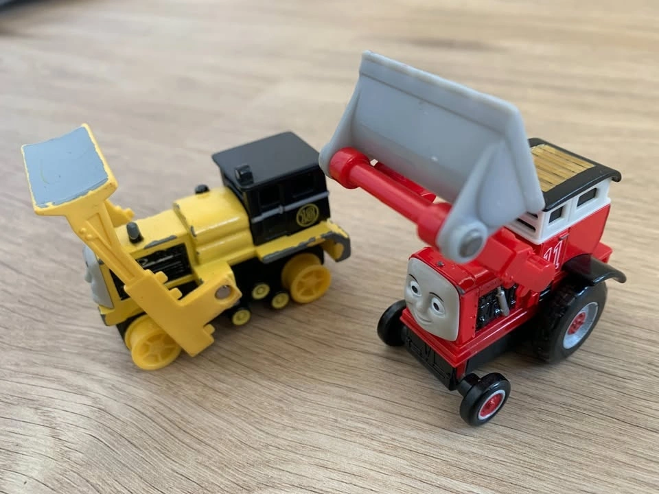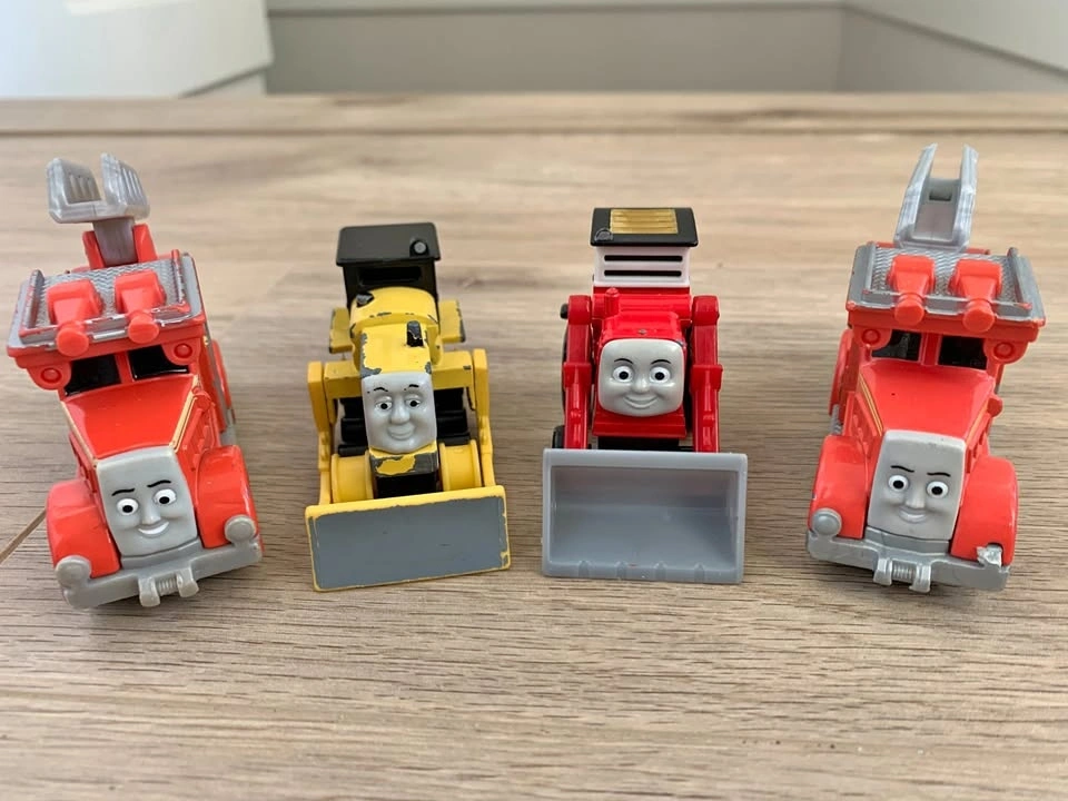 Selling 3 Thomas & Friends diecast vehicles: Flynn (red fire engine, 10cm), Jack (yellow bulldozer, 8cm), and Alfie (red bulldozer/loader, 8cm). They are priced at $5 each or $15 for all three. There is minor wear, but they are still in good condition for collectors or children. Comes from a smoke and pet-free home. Pick up in Willoughby, Langley. CASH ONLY.