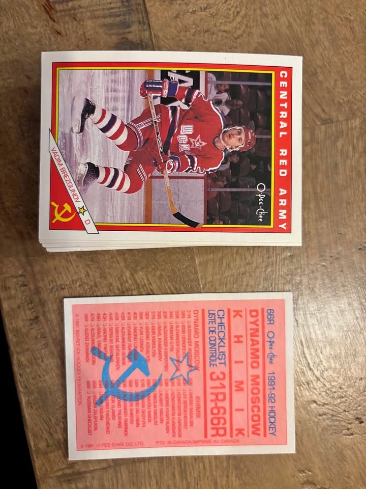 Complete 1991-92 O-Pee-Chee Central Red Army hockey card set. Cards are in great overall condition and have been well kept. Includes: Full Central Red Army team set, Clean edges and strong color, From the classic early-90s O-Pee-Chee release. Great addition for vintage hockey collectors or anyone building out their OPC sets. Pickup in Edmonton.