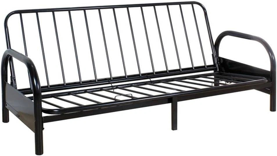 A sturdy, modern futon frame perfect for apartments, guest rooms, dorms, or small spaces. Sleek black finish with a durable build that supports both sitting and sleeping comfortably.