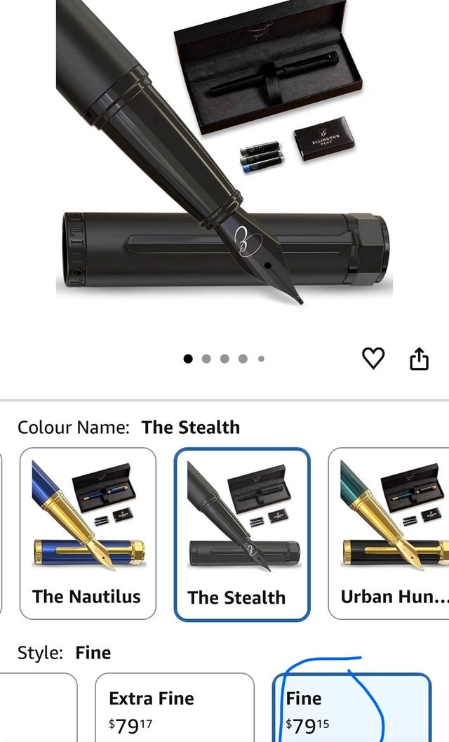 Ellington Pens Luxury Fountain Pen Set - Smooth Fine Nib - Includes Refillable Ink Converter, 3 Ink Cartridges [Black & Blue], Gift Box - Elegant Calligraphy. Pickup in Barrhaven.