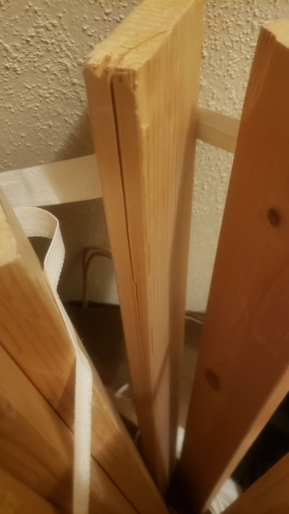 There is a small crack on one of the slats. Please see photos for details.