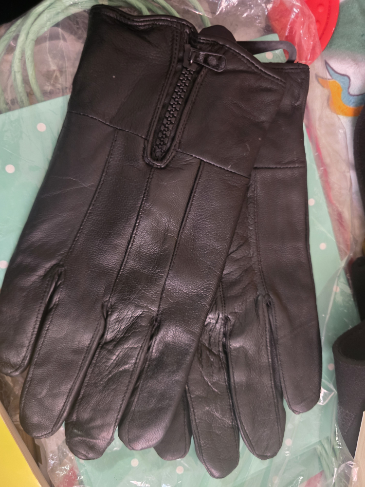 Selling a pair of black leather gloves in size L. They are in great condition and ready to keep your hands warm!