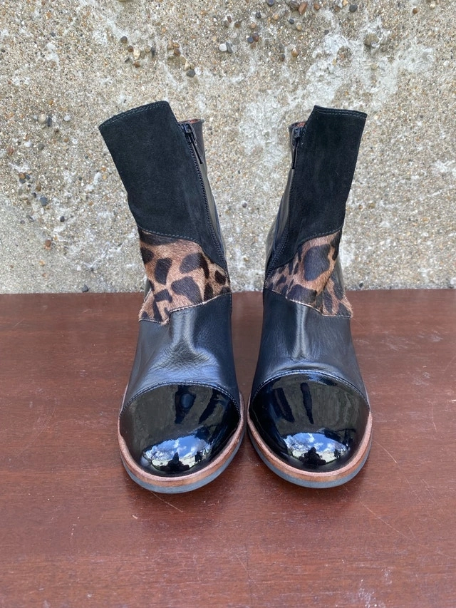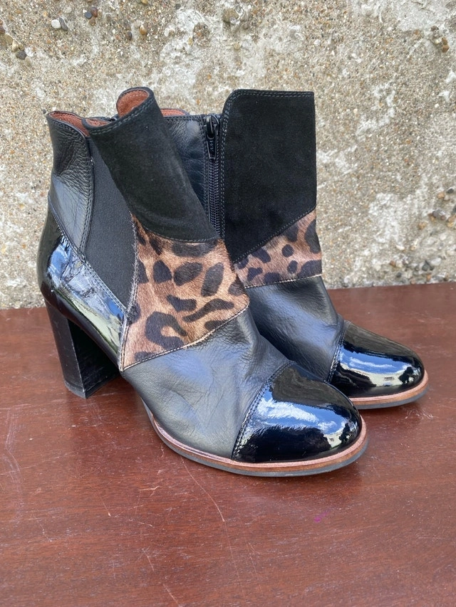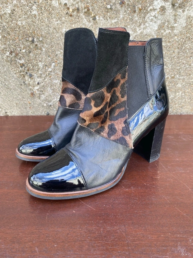 Elevate your shoe collection with these stylish Hispanitas ankle boots, showcasing a blend of leather, suede, and leopard print accents. These pre-owned boots are well-maintained and bring a unique flair to any outfit. Size 37 (approx. US 6.5-7). Add a touch of wild sophistication to your wardrobe.
