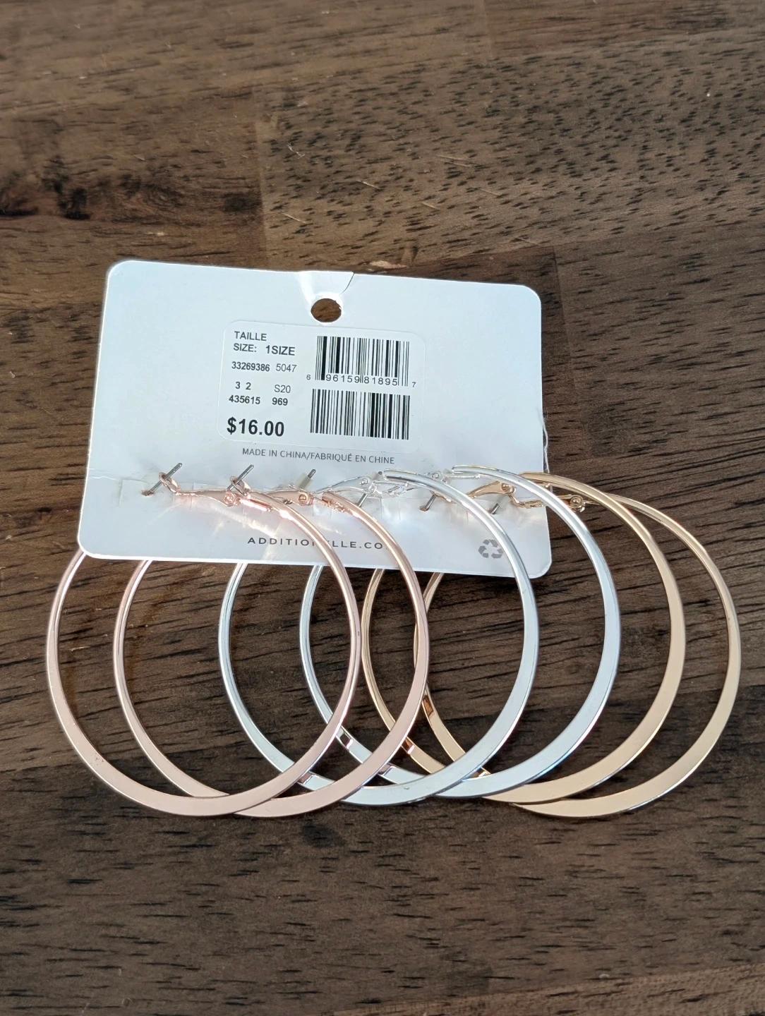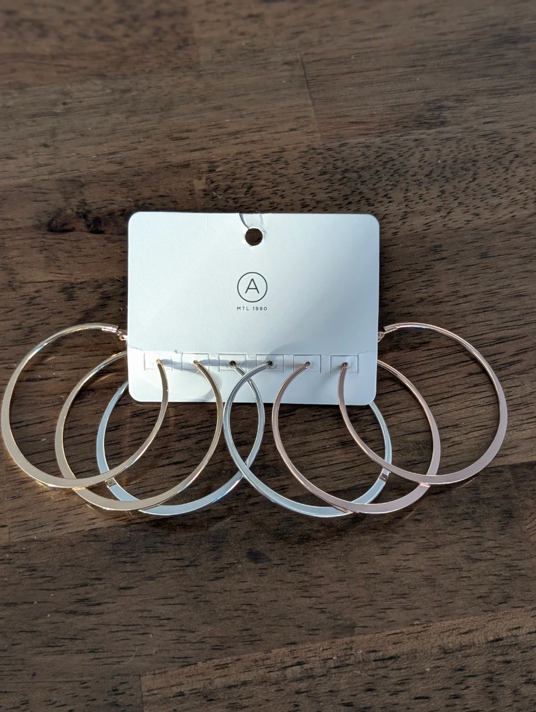 Selling a brand new set of hoop earrings! The set comes with three pairs of earrings in gold, silver, and rose gold tones. Originally bought for $16