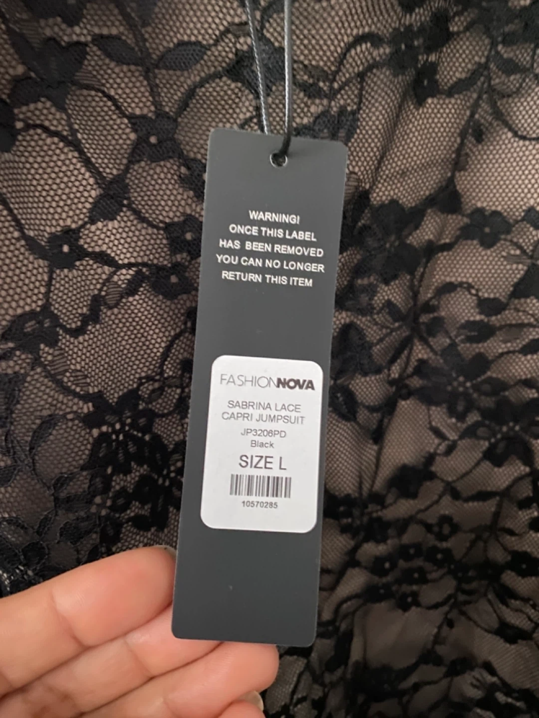 Buy & SellFashion Nova Sabrina Lace Capri Jumpsuit Black Size LFashion Nova Sabrina Lace Capri Jumpsuit Black Size L$30This is a Fashion Nova Sabrina Lace Capri Jumpsuit. It's black with lace overlay and a tan lining. Size L.BrandFashion NovaWHERE TO MEET20 INN ON THE PARK DRView MapSELLERverifiedREZABanbury1000+48 reviews0 chats·1 favorites·4 viewsSEND CHAT TO SELLERHi REZA! I’m interested in your listing.Hi REZA! I’m interested in your listing.Get the Karrot app to chatSign In to chat