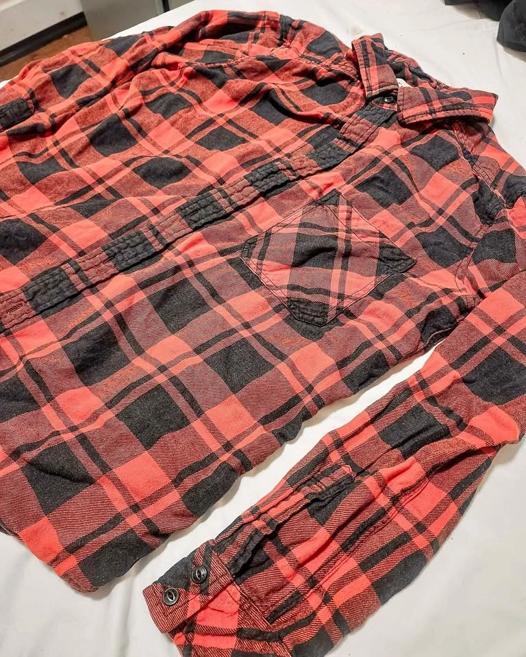 Classic TNA button-down flannel in a red and black buffalo check pattern. Standard fit in a mid-weight 100% cotton fabric. Excellent condition, barely worn. No pilling, stains, or signs of wear. From a smoke-free, pet-free home.