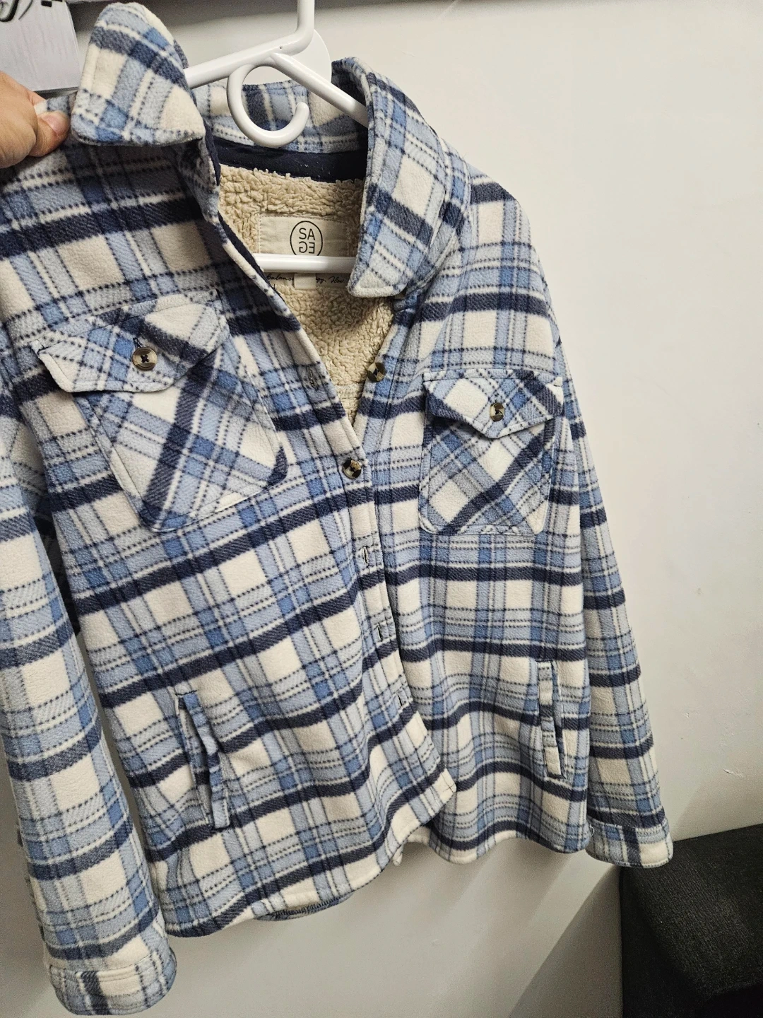 SA DE CO Blue Plaid Sherpa Lined Fleece Shirt Jacket