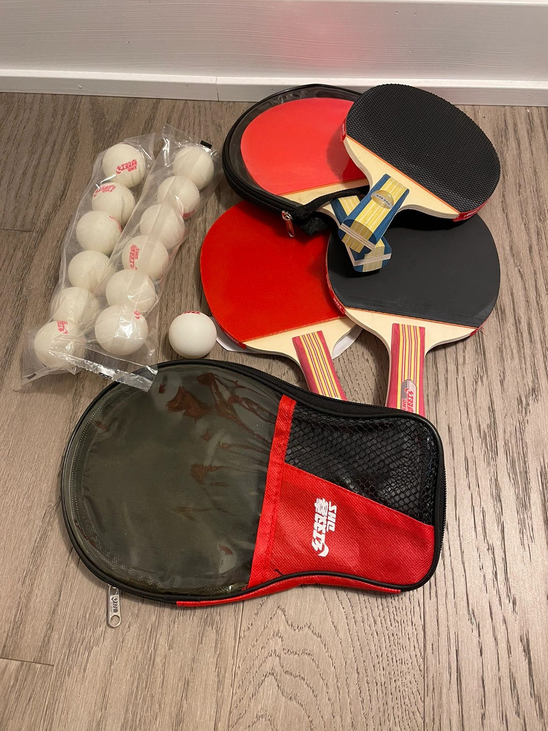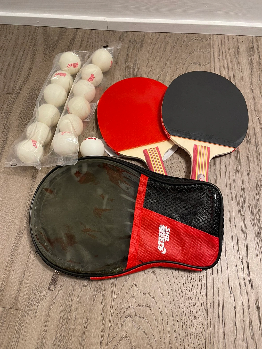 Ping pong racket, case, and balls