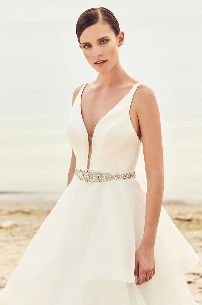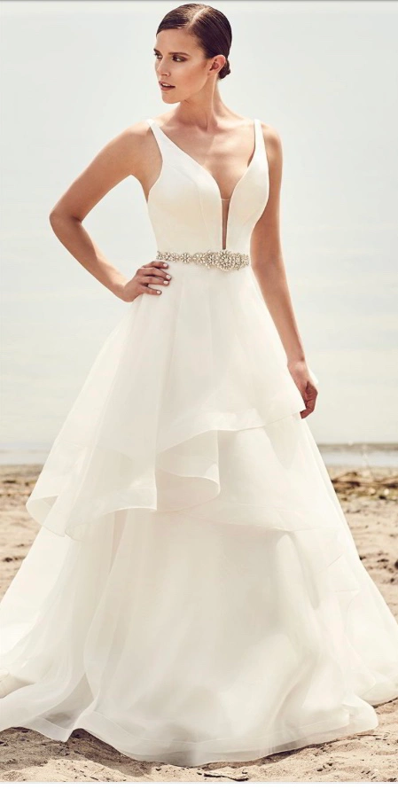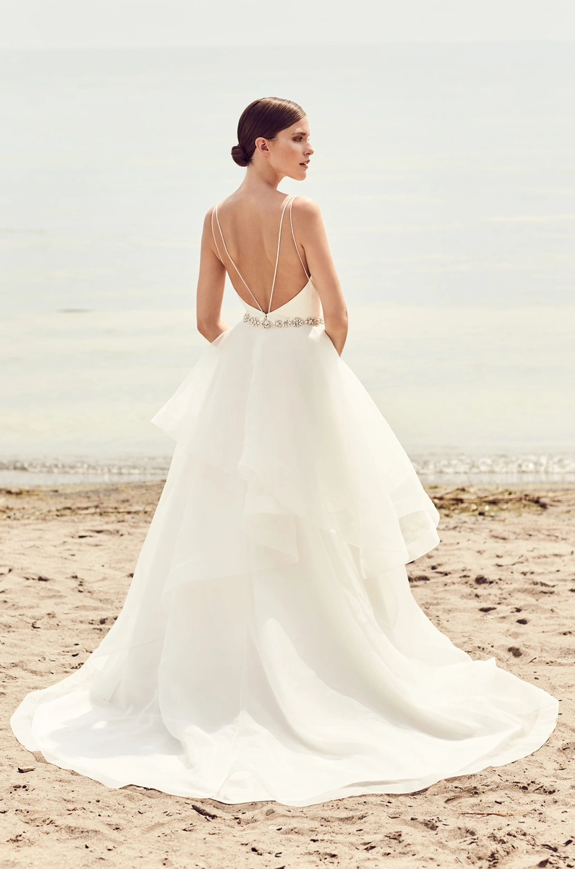 Multi tiered organza skirt finished with 2” horsehair edging on hems