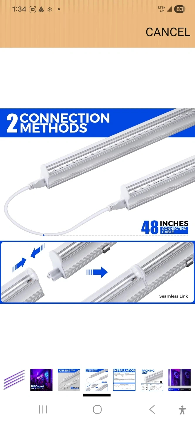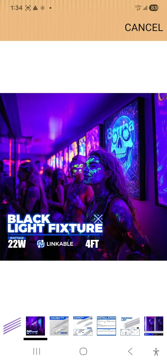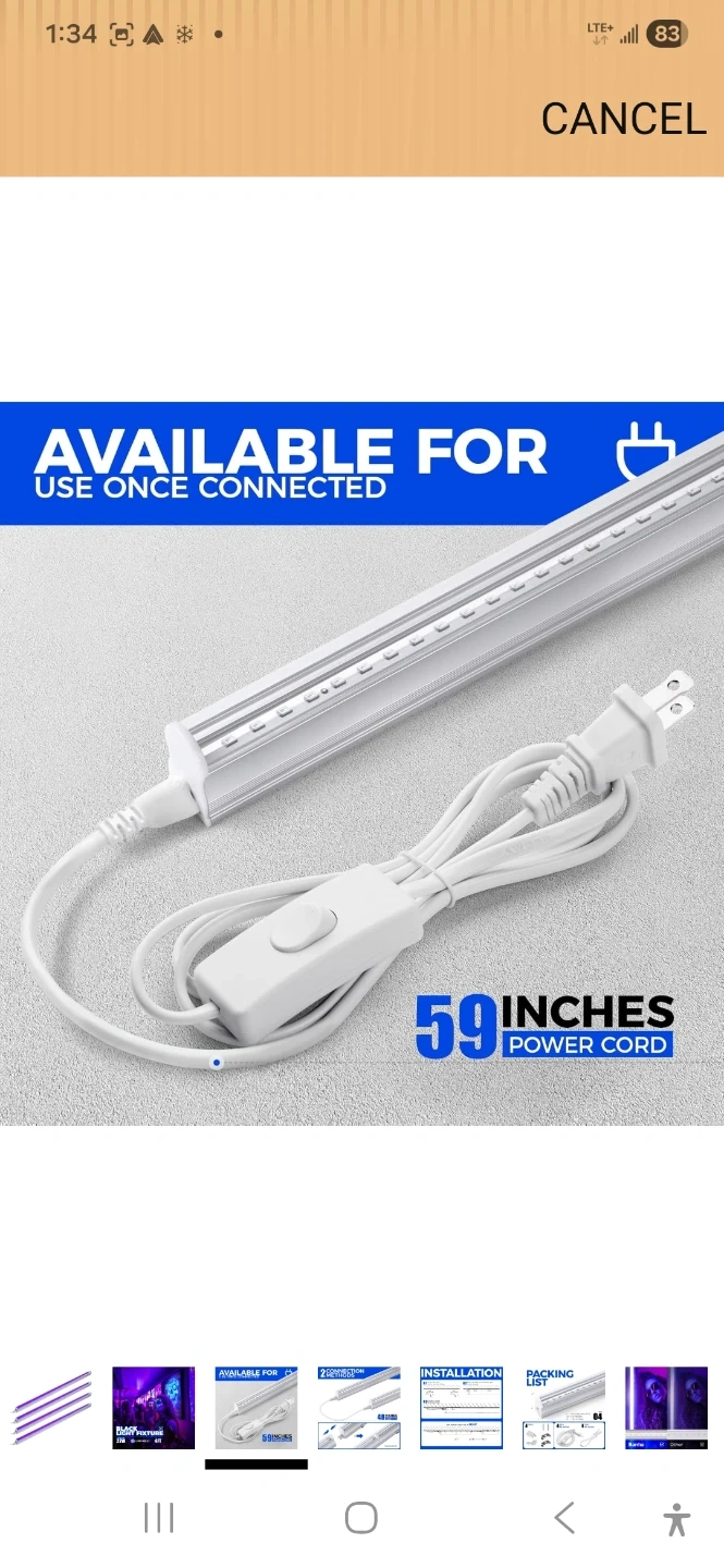 This is a 4ft linkable black light fixture, perfect for parties or creating atmosphere. It has two connection methods and can connect up to eight lights together. The fixture comes with a 59-inch power cord.