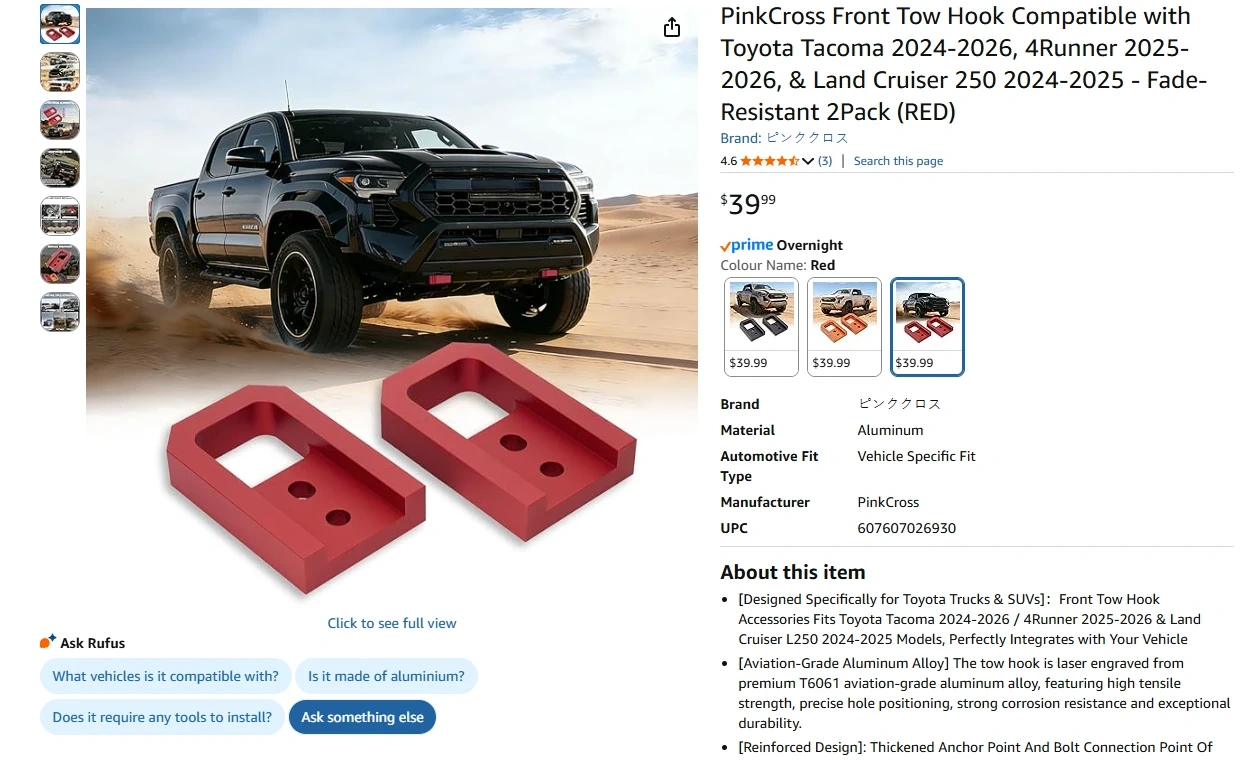 Front Tow Hook Compatible with Toyota Tacoma 2024-2026, 4Runner 2025-2026, & Land Cruiser 250 2024-2025 - Fade-Resistant 2Pack (RED), Brand New in the Box/Sealed