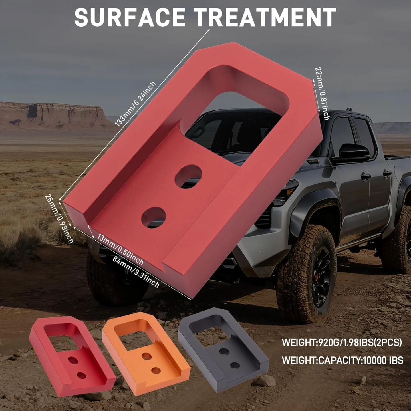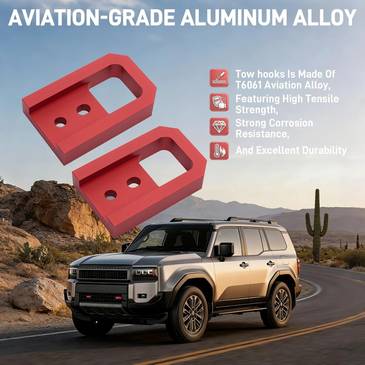 [Aviation-Grade Aluminum Alloy] The tow hook is laser engraved from premium T6061 aviation-grade aluminum alloy, featuring high tensile strength, precise hole positioning, strong corrosion resistance and exceptional durability.
