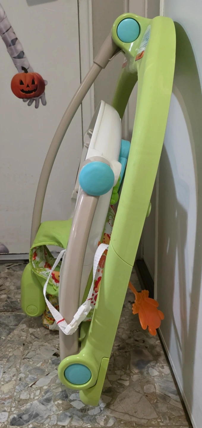 This Fisher-Price Jumperoo features interactive toys and music to keep your baby entertained. It's designed for safe bouncing and exploration. Sale as is.