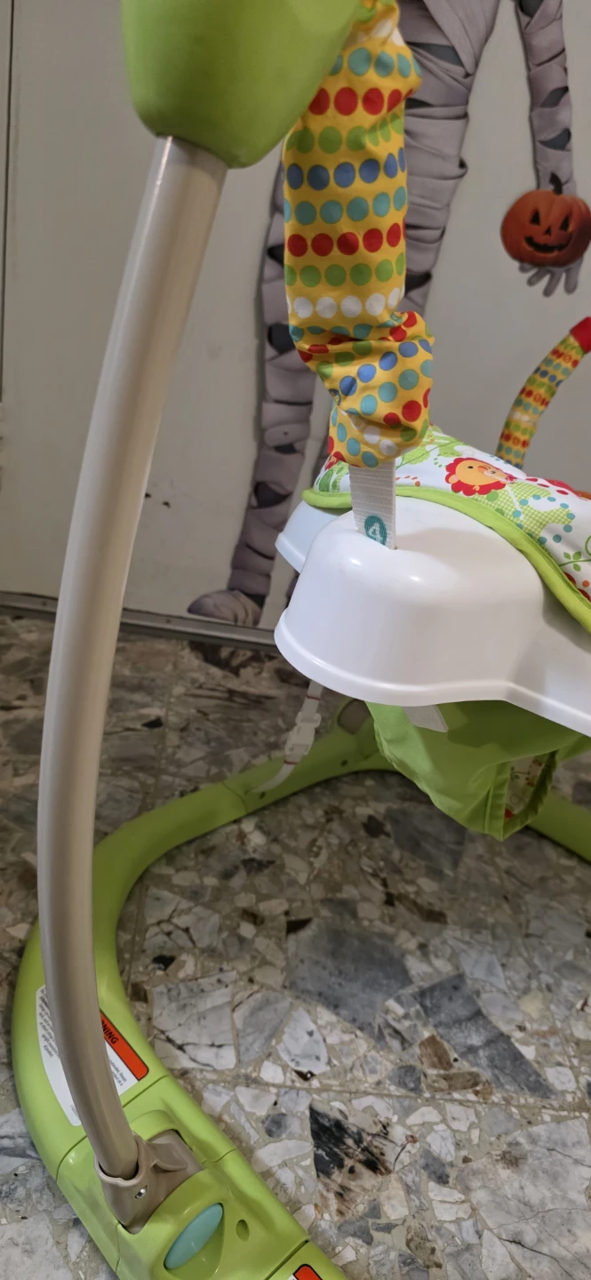 This Fisher-Price Jumperoo features interactive toys and music to keep your baby entertained. It's designed for safe bouncing and exploration. Sale as is.