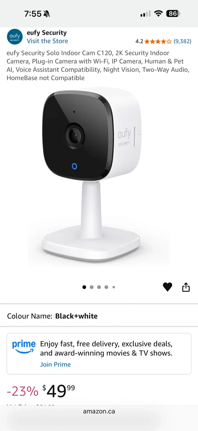 This is an eufy Security Solo Indoor Cam C120 with 2K resolution. It features on-device AI technology for human and pet detection. The camera works with Apple HomeKit and supports 24/7 recording. It's a plug-in camera with Wi-Fi and IP connectivity. Selling it as I am moving and no longer need it.