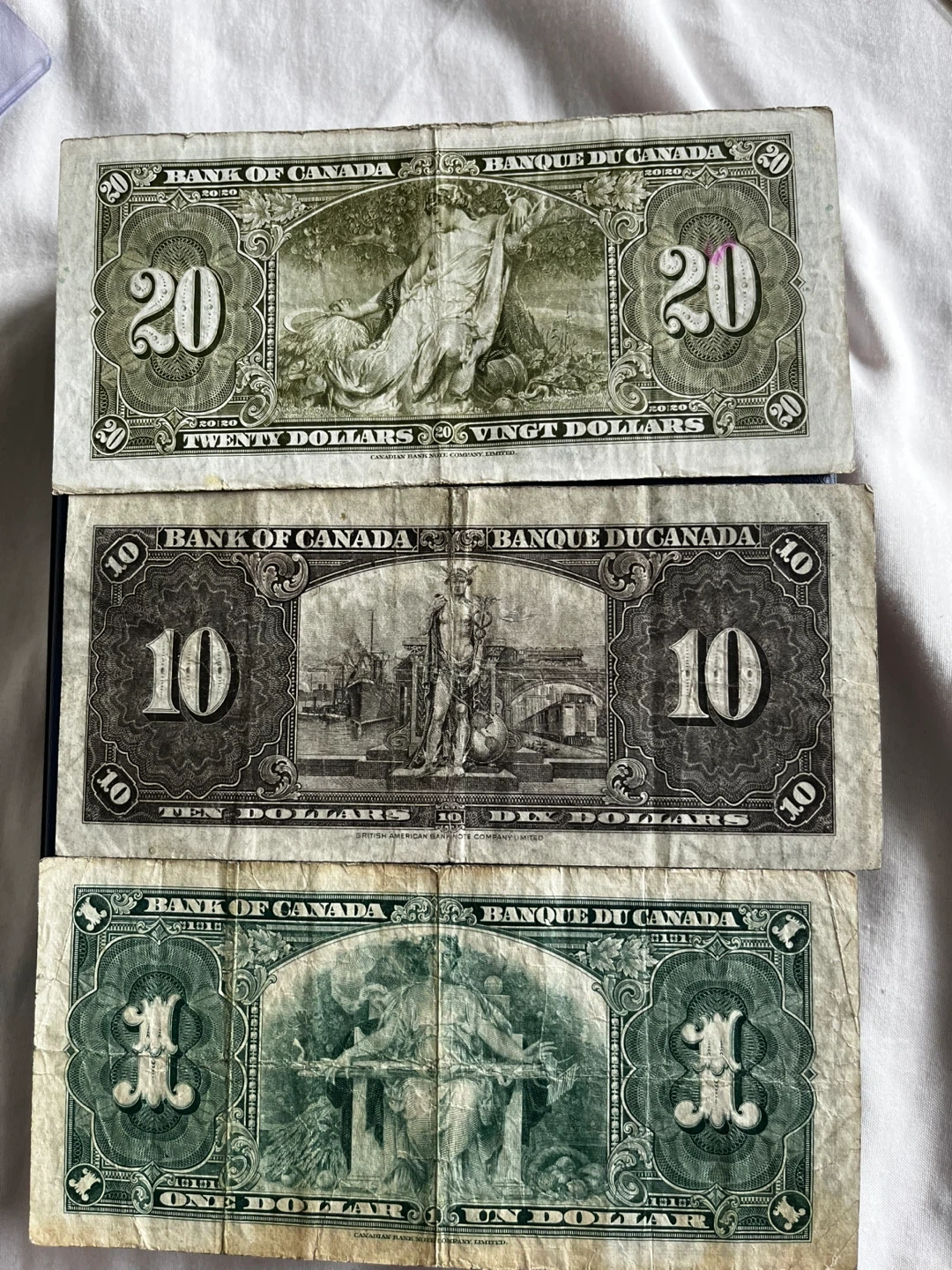 1937 Bank of Canada Currency Set - $1, $10, $20 Bills