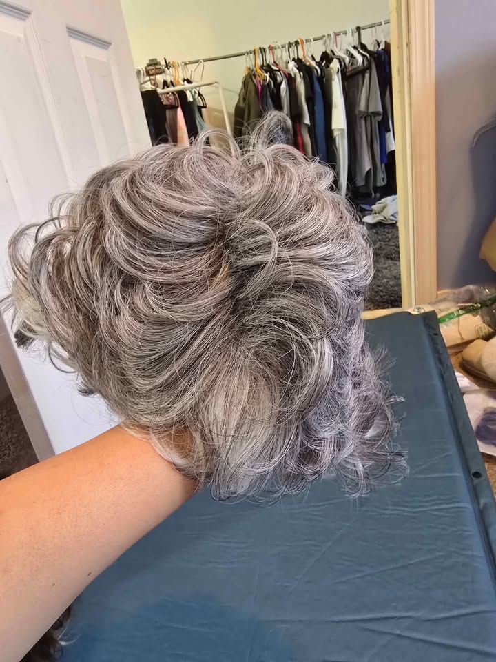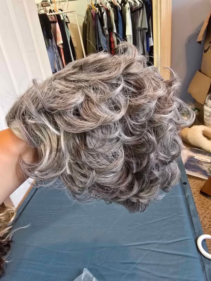 Style: Curly gray with natural waves and soft texture