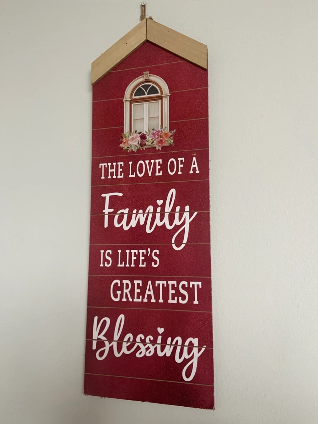 This charming wooden wall plaque features the heartwarming quote, "The love of a Family is Life's Greatest Blessing." Its red distressed finish and floral accents add a touch of rustic warmth to any home. It's perfect for a kitchen, living room, or entryway!