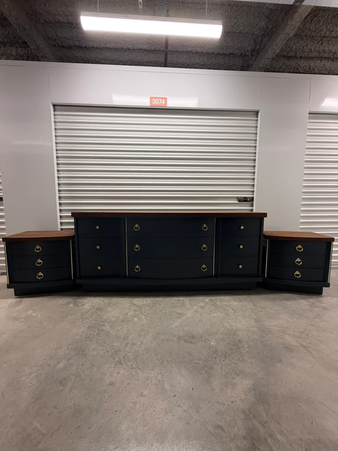🎨Navy Blue Dresser and nightstand and Gold color Handles