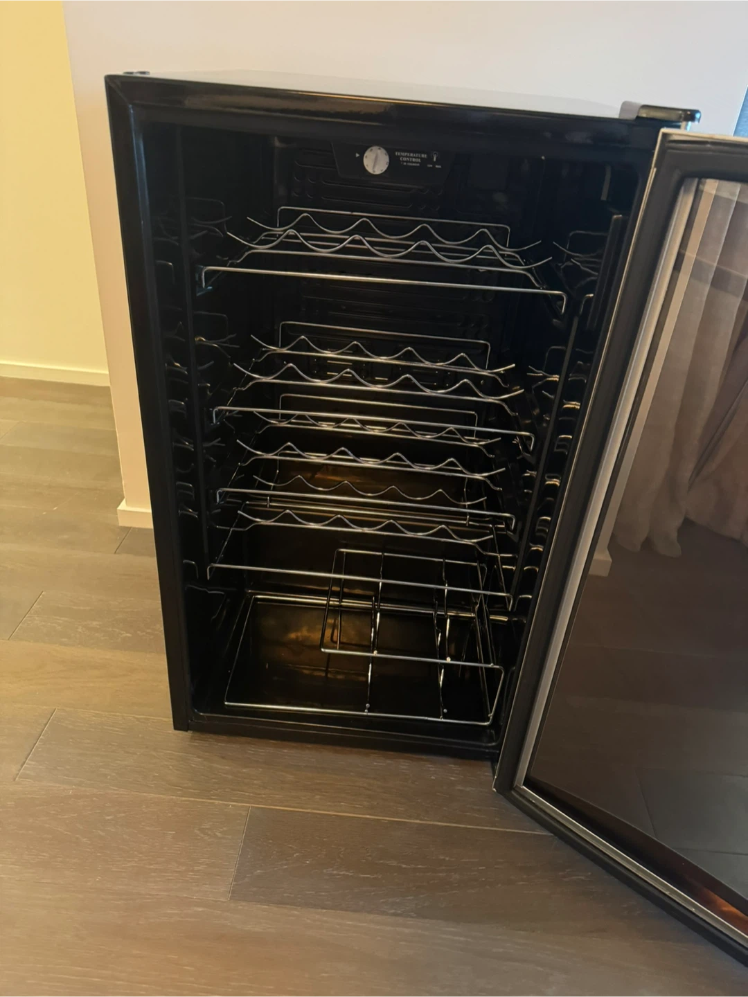 Upgraded our wine storage… so selling this Magic Chef wine fridge, model MCWC30MCG! In great working condition (interior light and cooling) and ready to keep your favorite wines chilled. This is a free-standing unit.