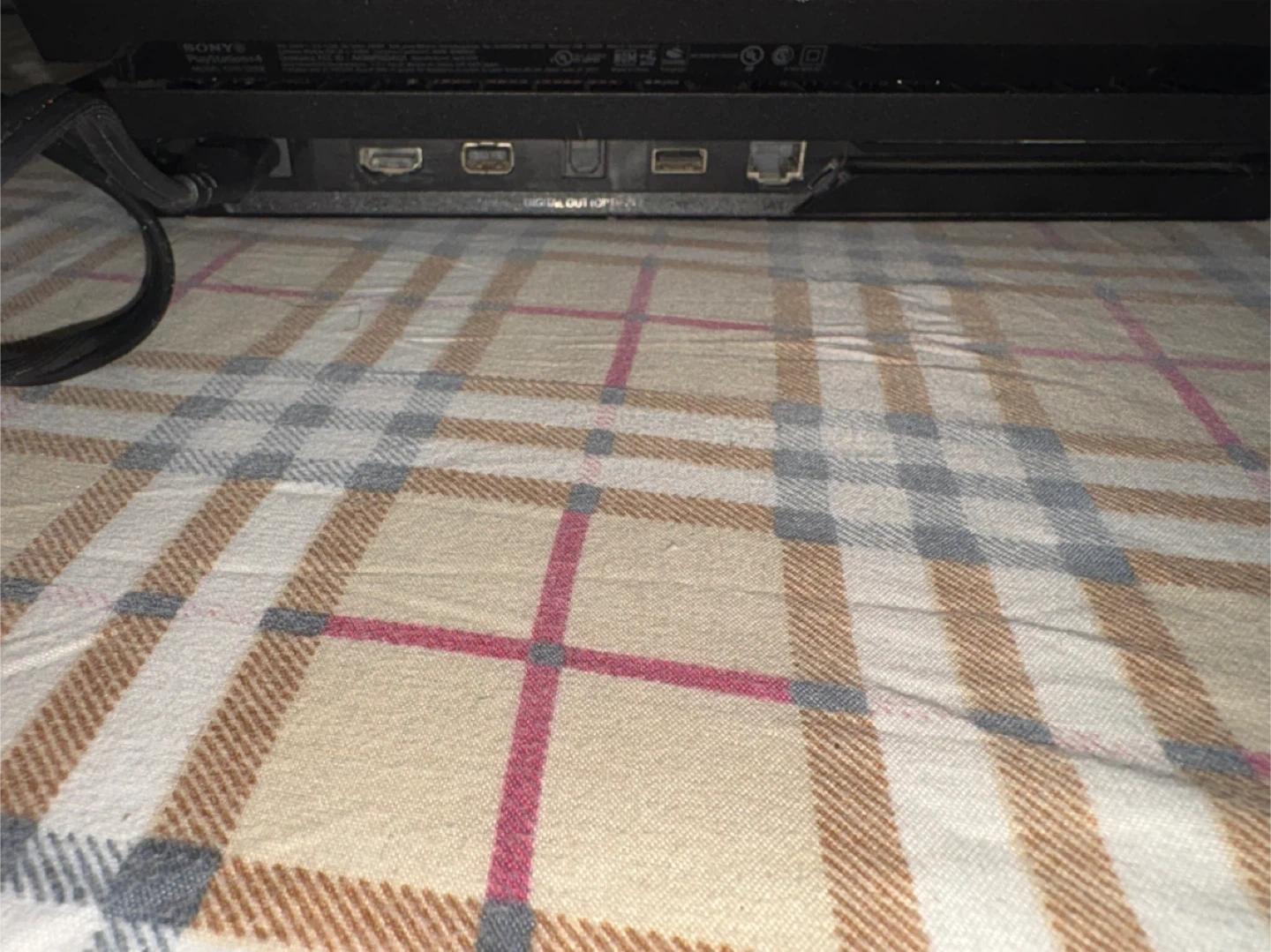 This is a Sony PlayStation 4 Pro console. It's black and includes the power cable. Plays games in 4K.