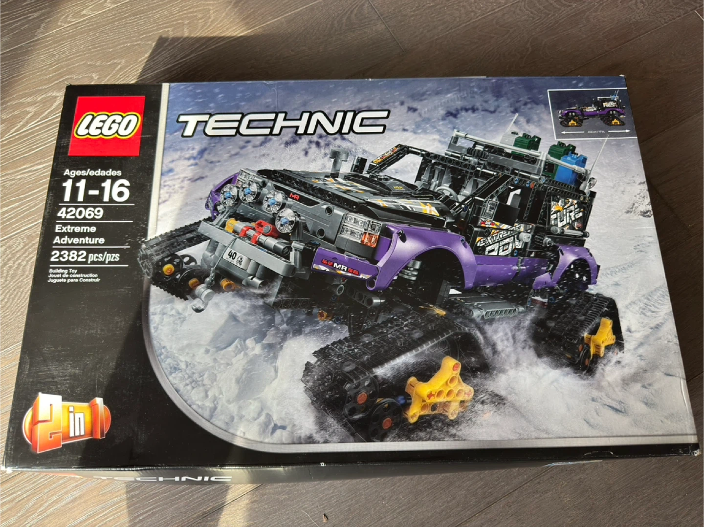 This is the LEGO Technic 42069 Extreme Adventure building set. It contains 2382 pieces. It's designed for ages 11-16. This set is great for young builders who enjoy complex engineering challenges!