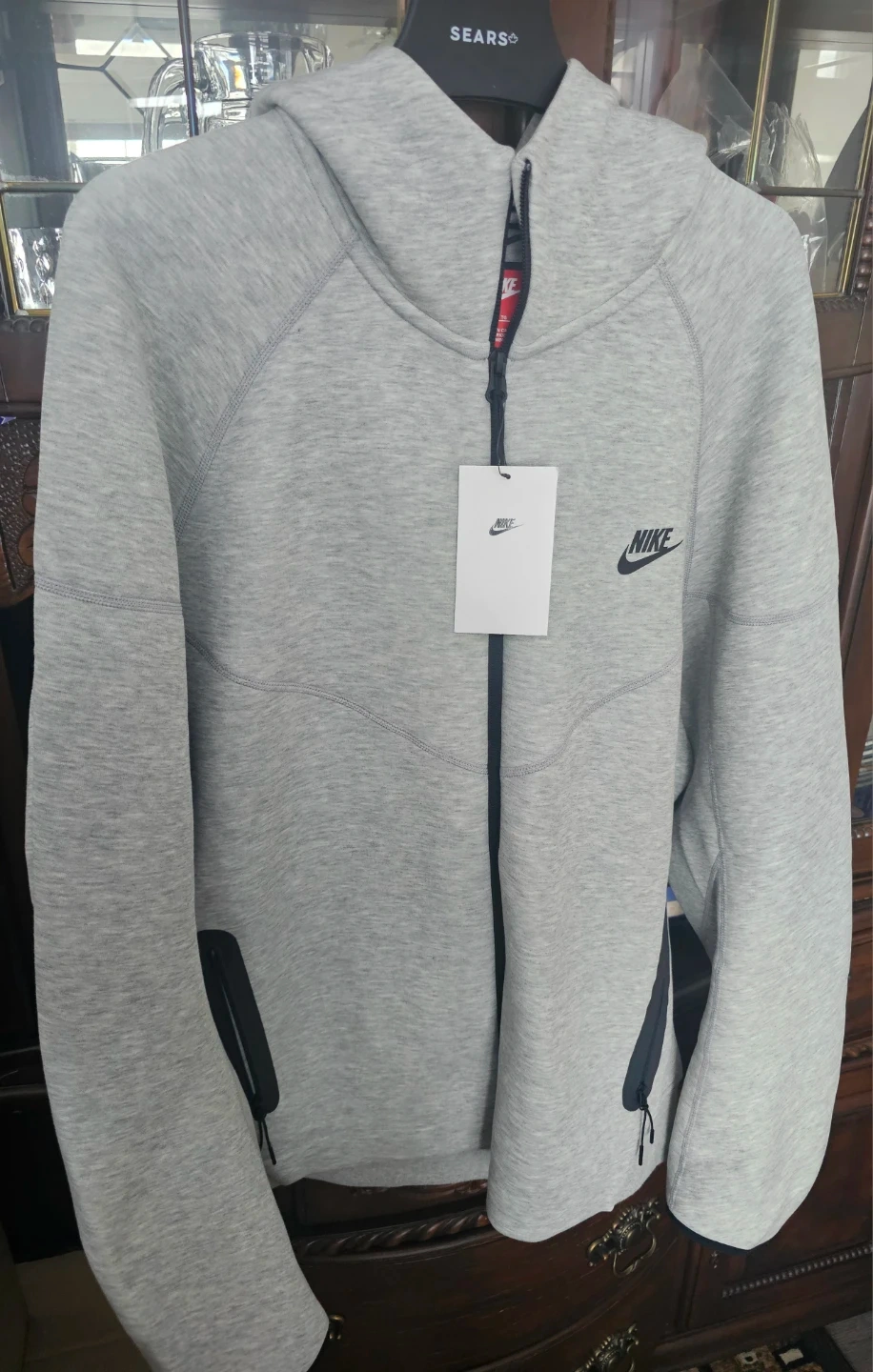 Grey Nike Tech Fleece full zip hoodie. Size XL. Made in Cambodia. It's a comfortable and stylish hoodie.