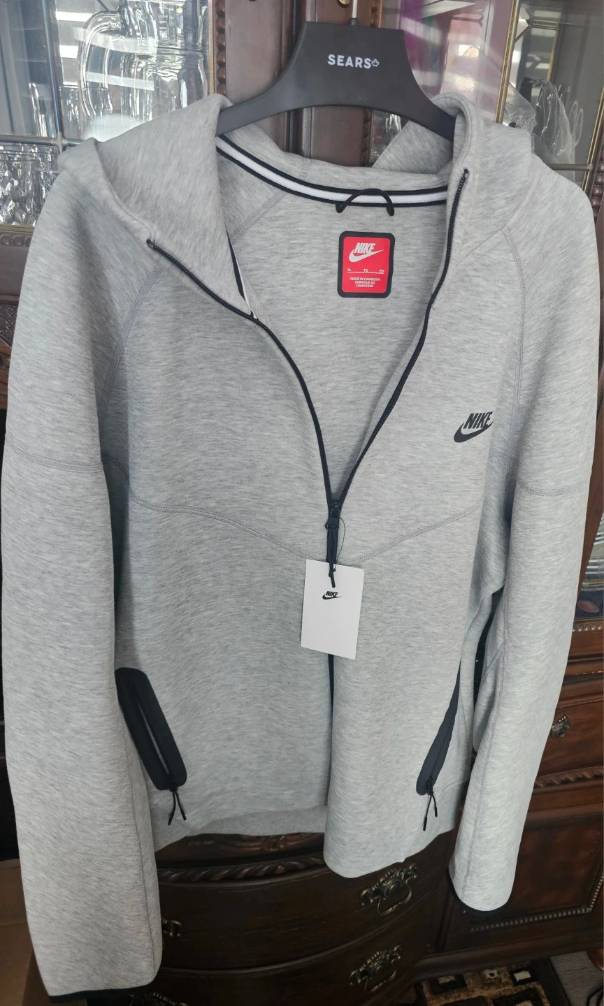 Grey Nike Tech Fleece full zip hoodie. Size XL. Made in Cambodia. It's a comfortable and stylish hoodie.