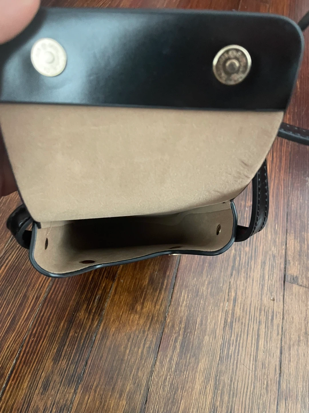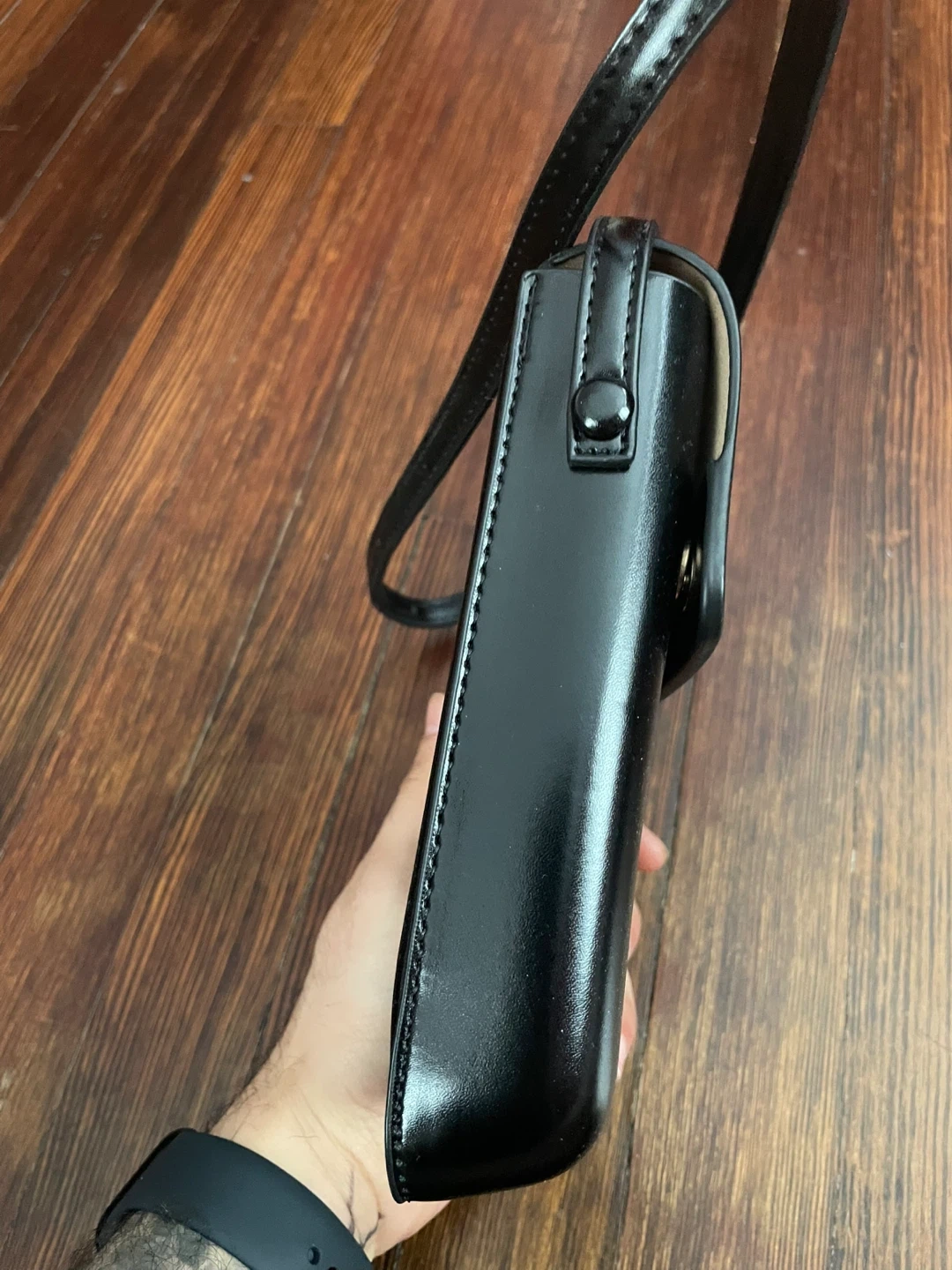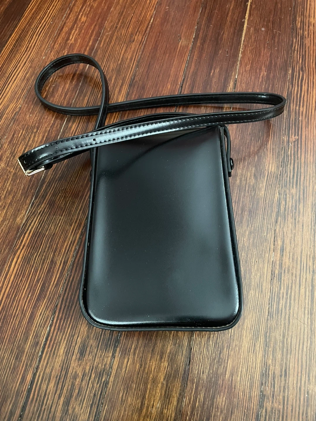 Selling a stylish black leather crossbody bag. It's perfect for carrying your essentials while keeping your hands free! The bag features a sleek design and is made of durable material.