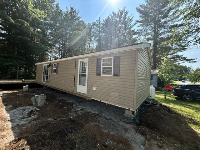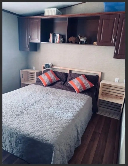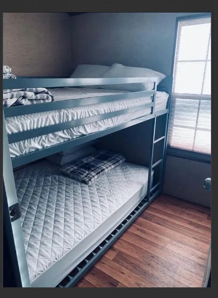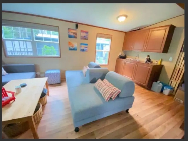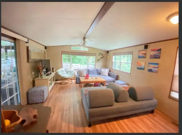 Price reduced! 2013 Northlander Cottager Escape park model trailer, 39 x 14 ft, 3 season only. Recently removed from a resort, it's fully furnished and move-in ready. Currently in storage near Keswick. Trailer mover is on standby. Features 2 bedrooms (Queen; Bunk with 2 Doubles), 3-pc bathroom, gas stove, over-the-stove microwave, fridge with top-mount freezer, L-shape sofa/bed in the living room, TV cabinet, handcrafted wood bar stools (2), and a movable kitchen island with storage. Includes air conditioning, a new gas water heater (2024), and a gas furnace. 550 sq. ft.