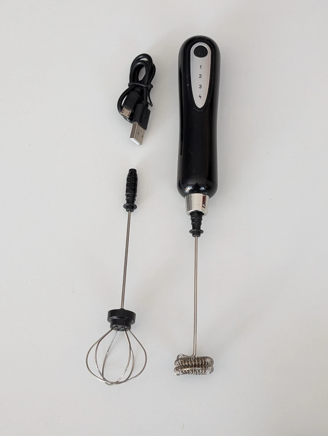 Selling a handy electric milk frother! It comes with two different frothing attachments and a USB charger. Perfect for making lattes, cappuccinos, or just frothy milk for your coffee