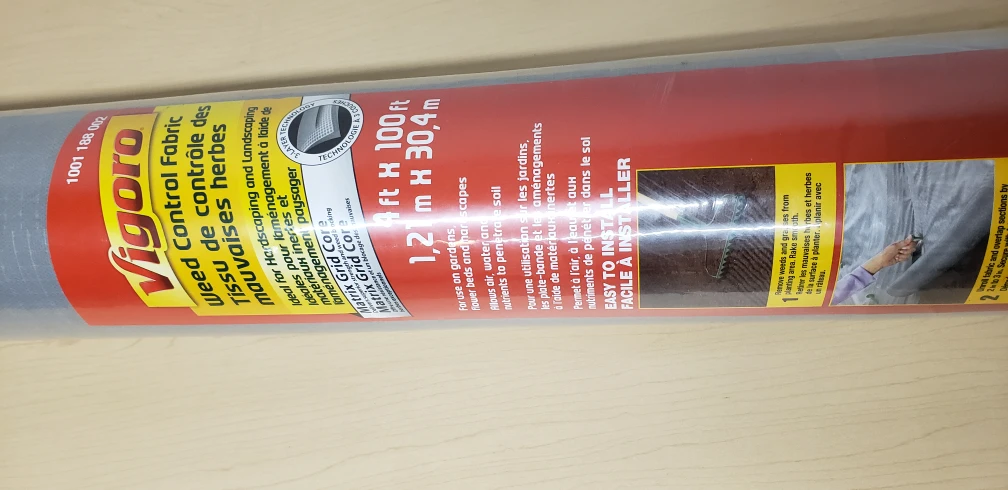 Selling a roll of Vigoro Weed Control Fabric. It's 4ft x 100ft (1.21m x 30.4m). Ideal for hardscaping and landscaping, flower beds, and gardens. It allows air, water, and nutrients to penetrate the soil. Easy to install!