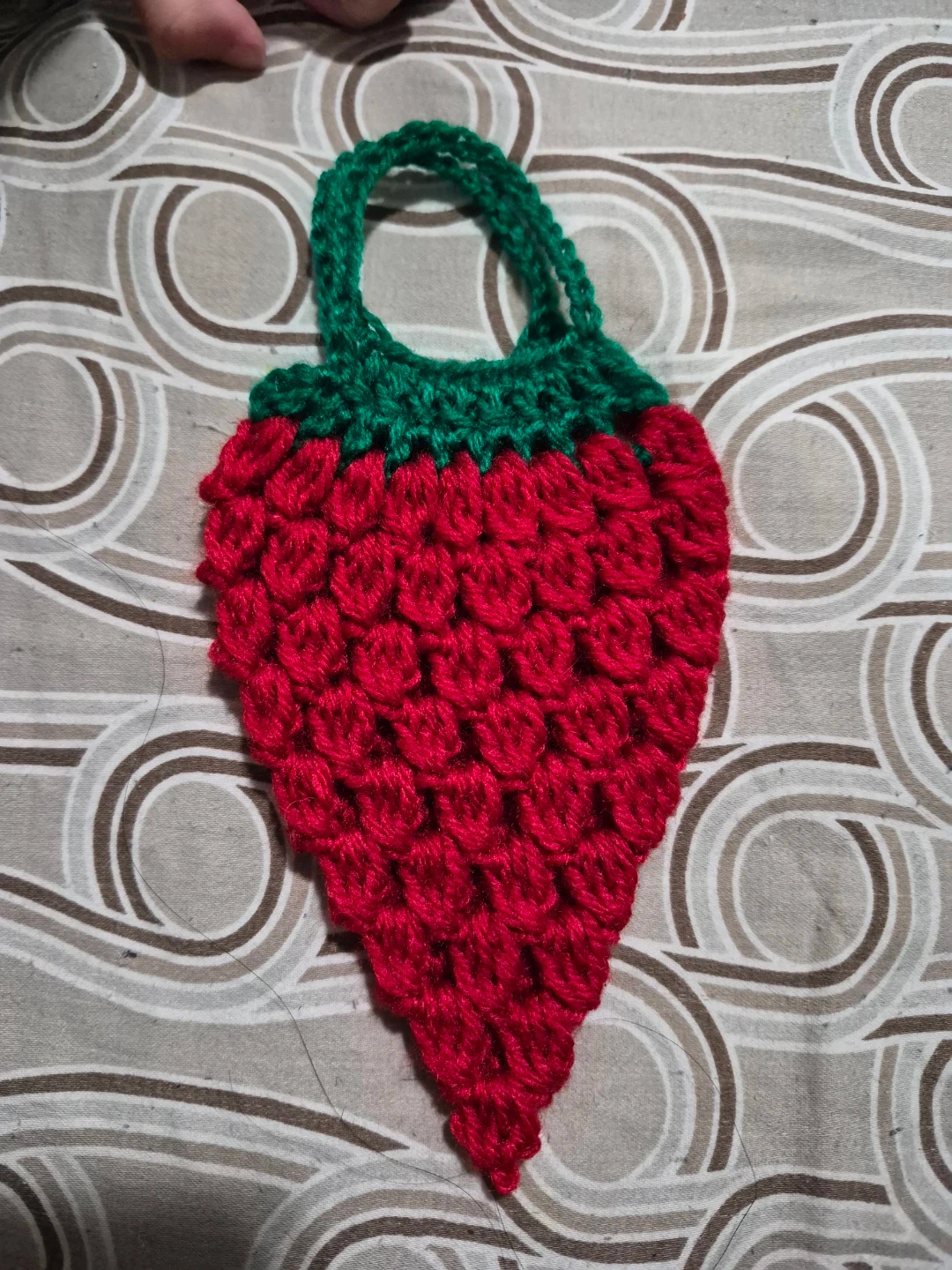 Super cute handmade crocheted strawberry pouch. It's red with a green top and loop. Perfect for small change or trinkets!