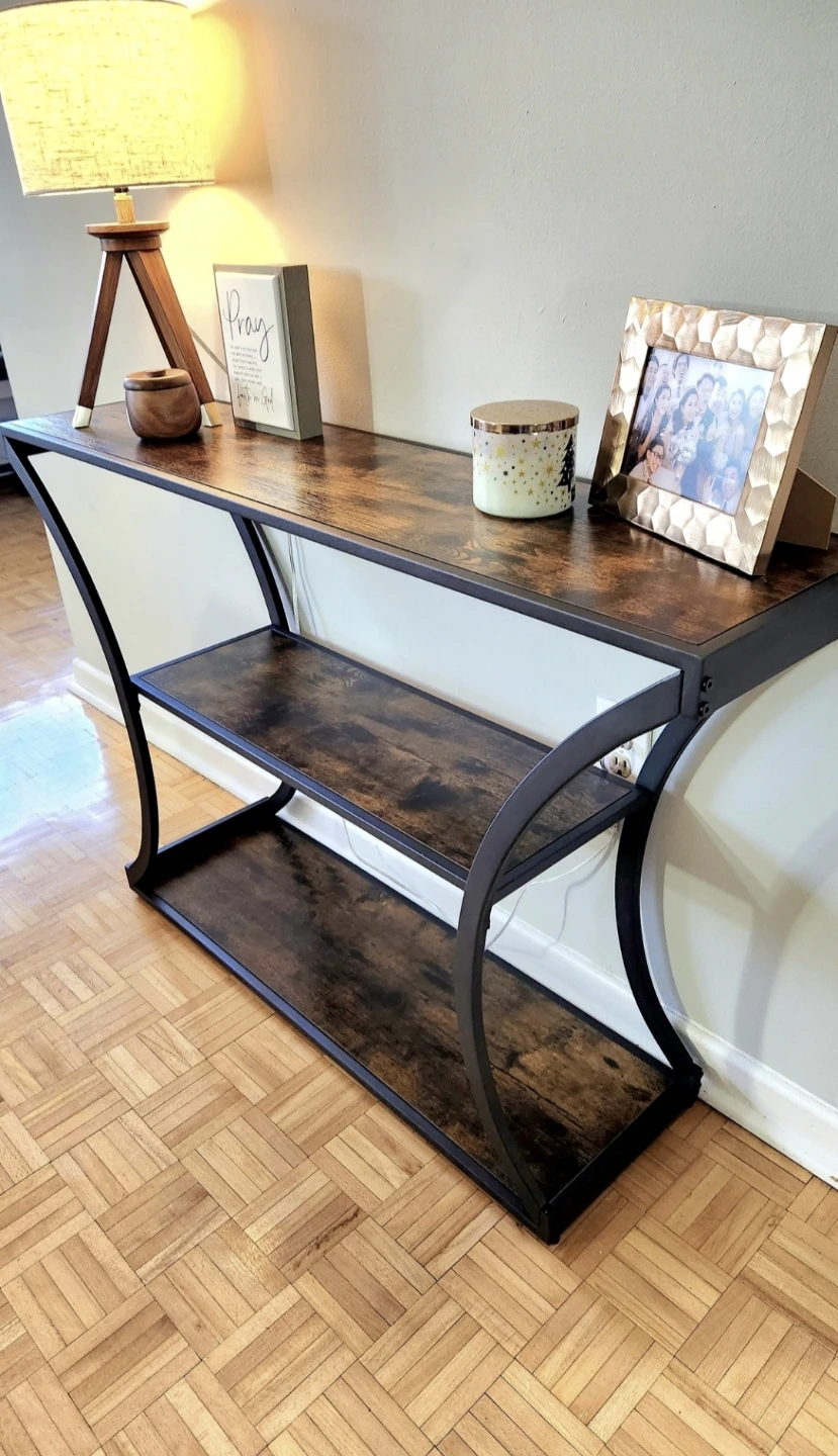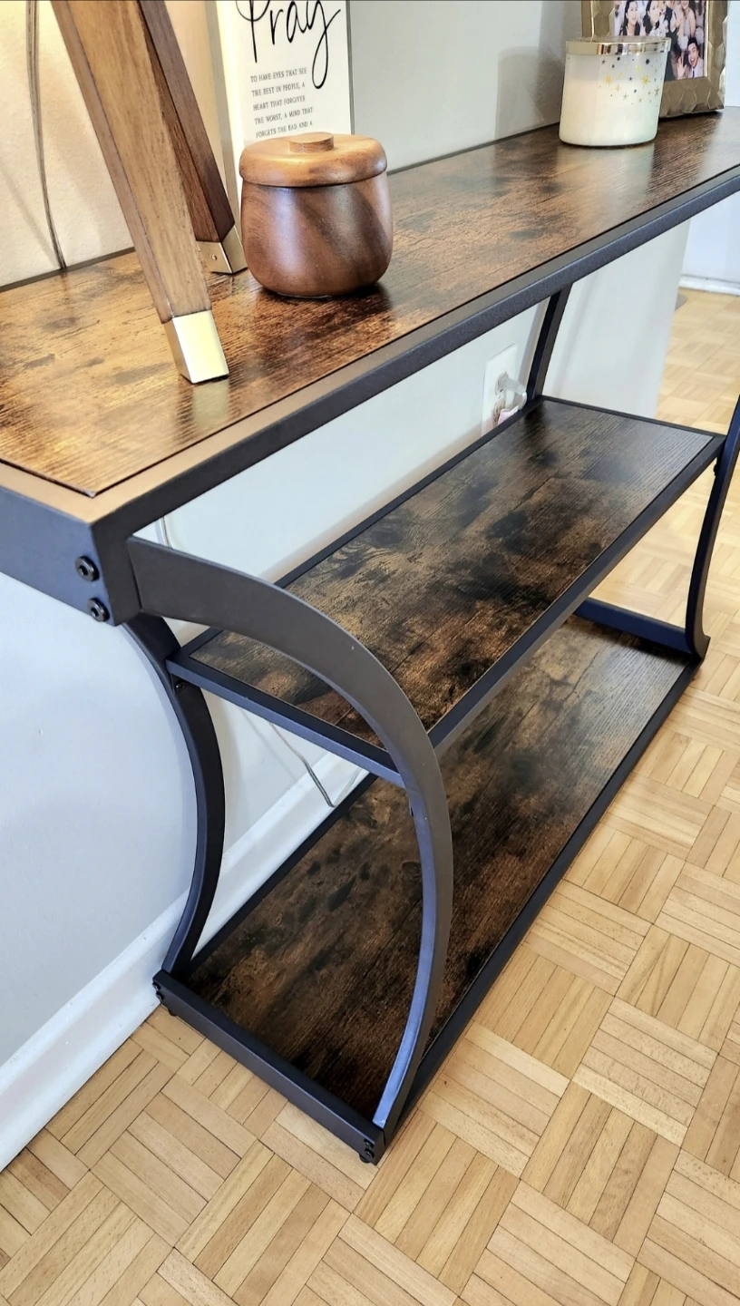 has never been used, the one in the picture is my own; Inhave this extra. Frame is heavy-duty metal and comes w/ top, middle, and bottom thick wood shelves. Original retail price cost more $285 (save $$), so price is not negotiable. See pictures and dimensions.