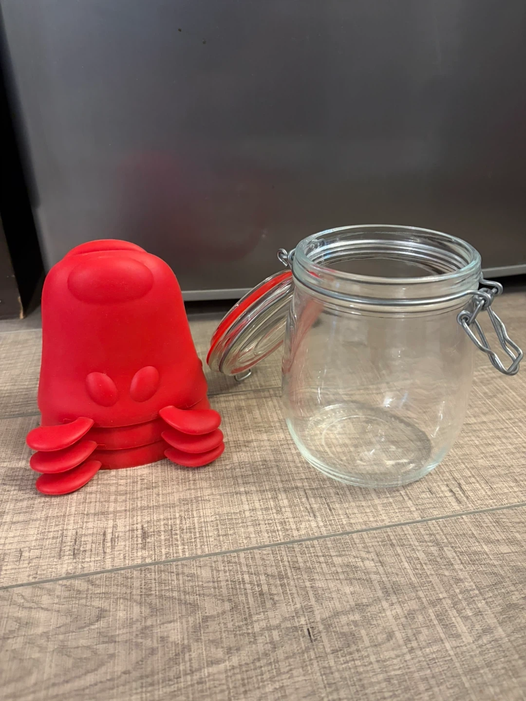đź«™Glass jar with clamp lid. It's perfect for holding small kitchen items or snacks.